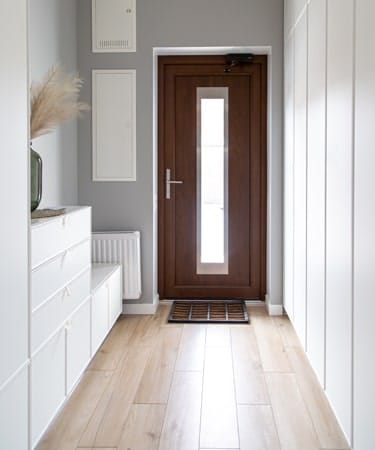 En ce qui concerne la porte, choisissez un modèle avec du verre ou une fenêtre pour inonder votre entrée de lumière.