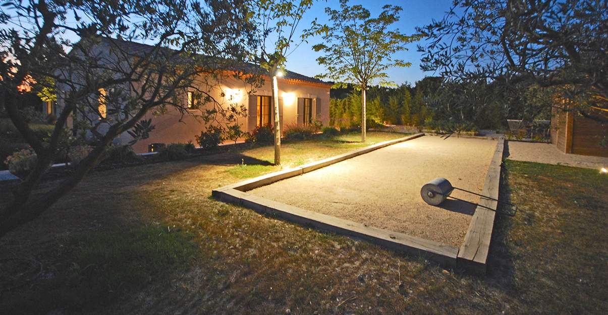 Enfin, pour faire durer encore davantage vos longues parties d’été, vous pouvez installer des éclairages extérieurs aux abords du terrain de pétanque pour l’éclairer une fois la nuit tombée. Selon l’emplacement du terrain, des assises - comme par exemple des bancs -, seront également les bienvenues !
